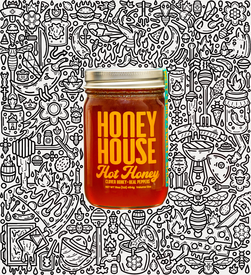 Experience the perfect balance of sweet and heat with Honey House Hot Honey. We start with our signature 100% raw, unfiltered clover honey sourced from American bee farms, then carefully blend it with premium natural dried peppers - no oils or artificial additives. The result is a pure, bold honey that delivers both the wholesome sweetness of raw honey and an exciting kick of natural heat.